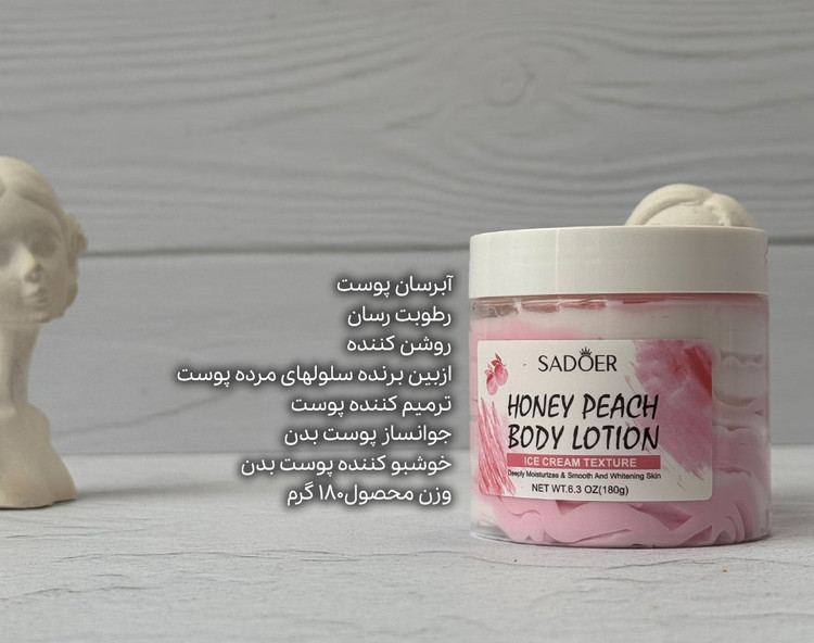 بستنی بدن SADOER با رایحه هلو یک محصول جذاب و دوستداشتنی برای افرادی است که به دنبال آبرسانی سبک همراه با حس خنکی و رایحهای میوهای هستند. بافت بستنیای آن تجربهای متفاوت نسبت به لوسیونهای معمولی ایجاد میکند و استفاده از آن را لذتبخشتر میکند 🍨🍑.