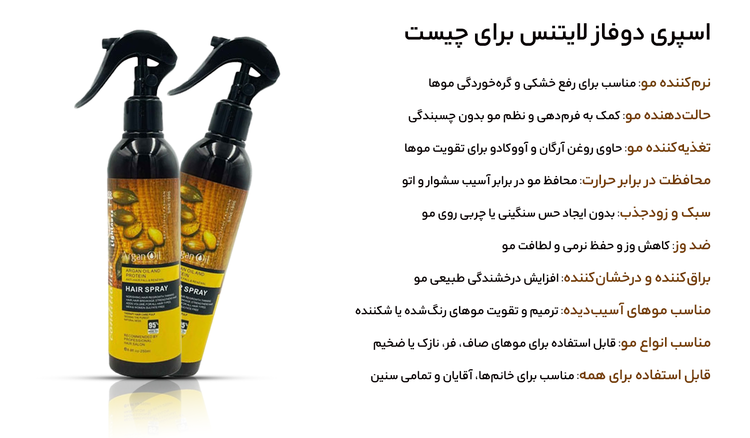 اسپری دوفاز مو برند لایتنس حاوی روغن آرگان حجم ۲۵۰ میلی لیتر